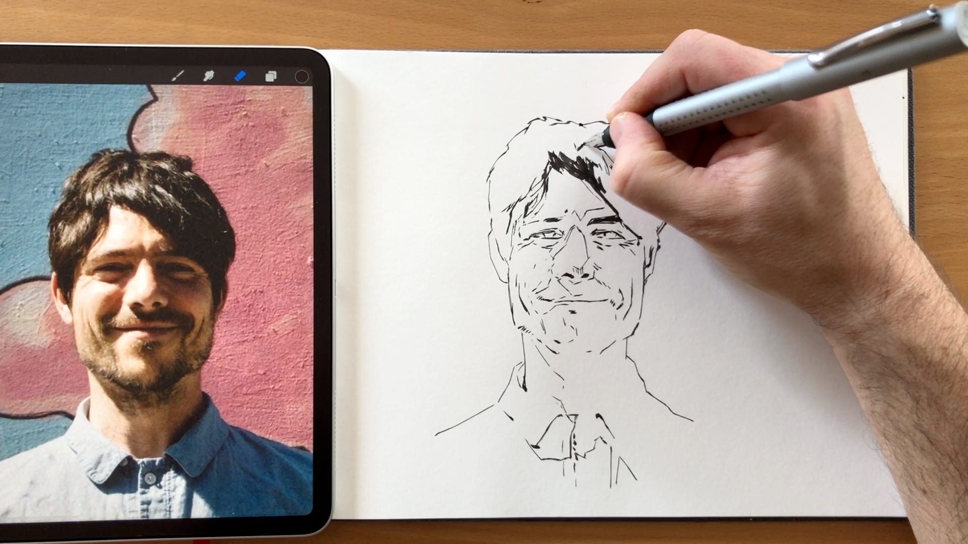 In this lesson (38 mins), Dylan demonstrates how to reach that point while drawing a portrait whose clear shadow shapes and "wonderful happy face" provide a perfect roadmap for high-contrast ink work.