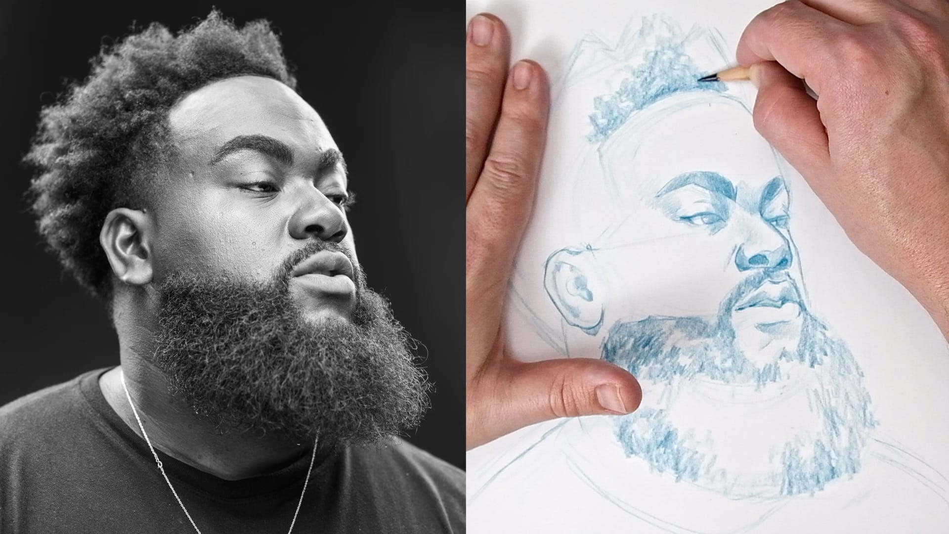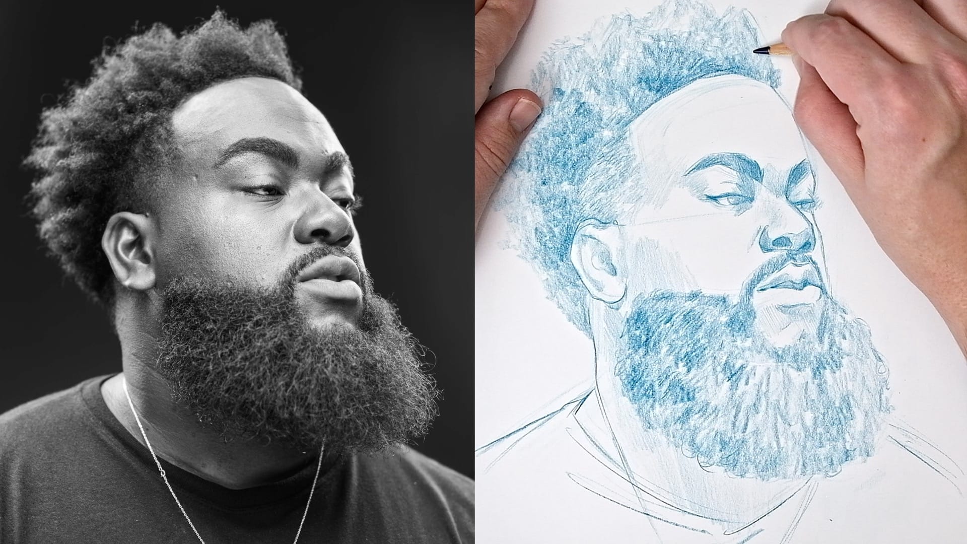 Today you'll learn how to manage a portrait filled with what Bay Area artist and art educator David Tenorio calls "complex information," specifically the interplay between hair, a beard, and the soft texture of skin.