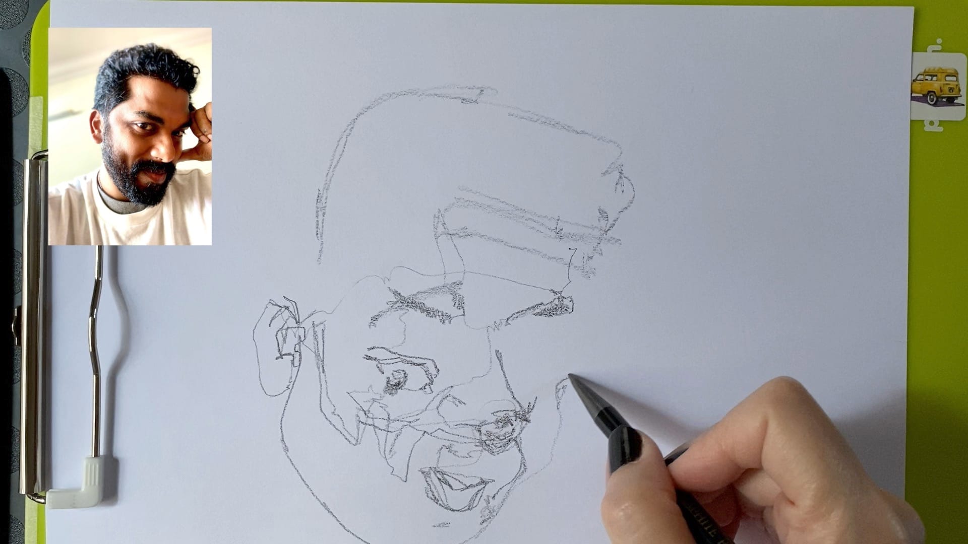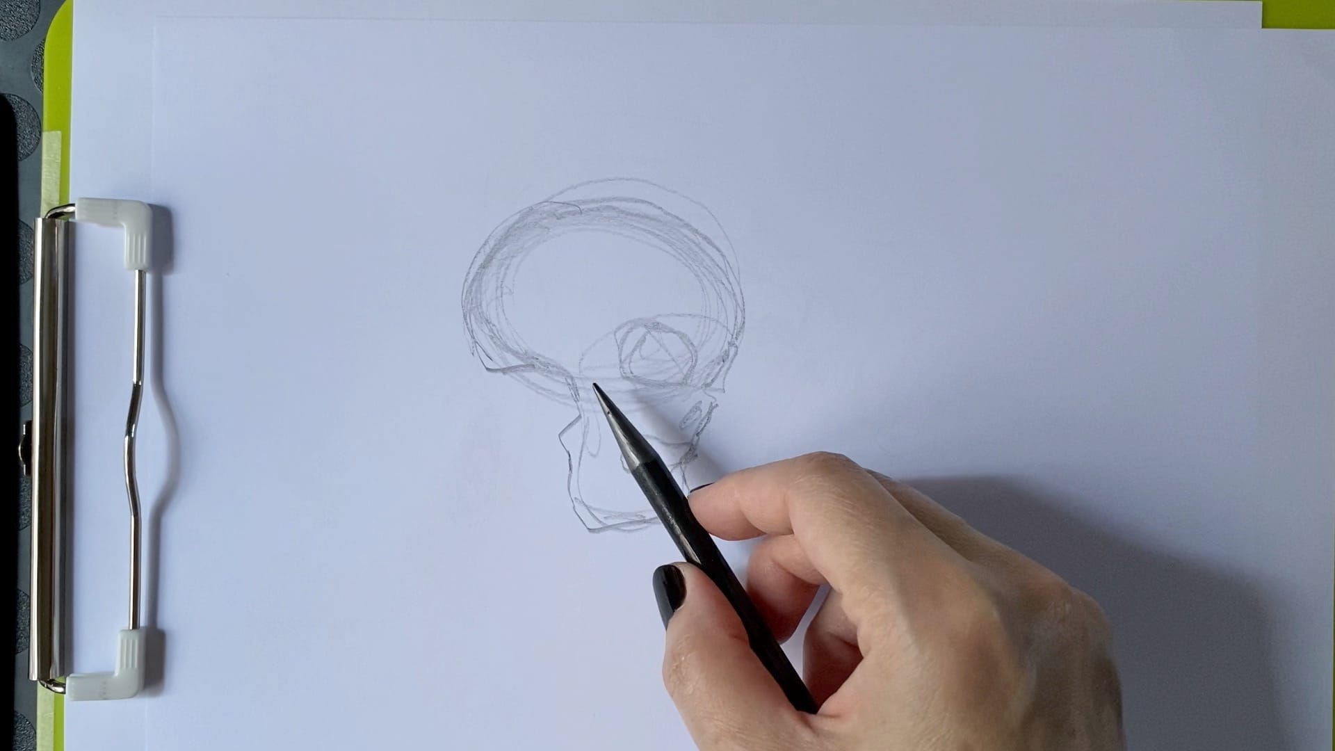 France's lesson also features a mini-workshop on drawing the human skull and keeping its underlying structure in mind as you draw your portrait.