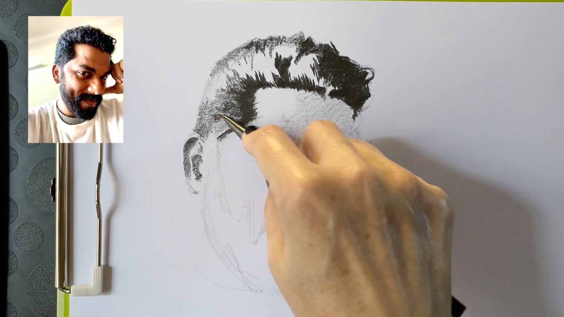 You'll then proceed to draw your muse by employing significant physical pressure to capture his dark hair while staying loose in your overall mentality.