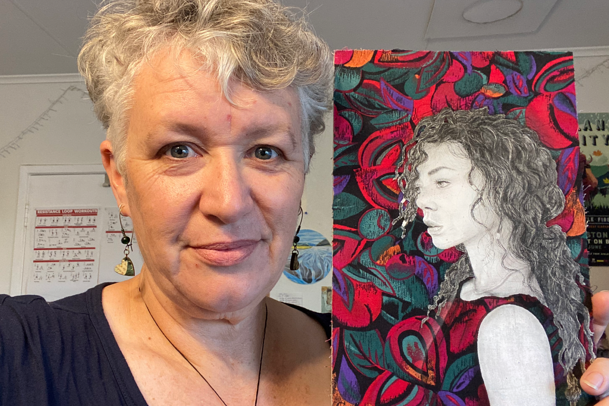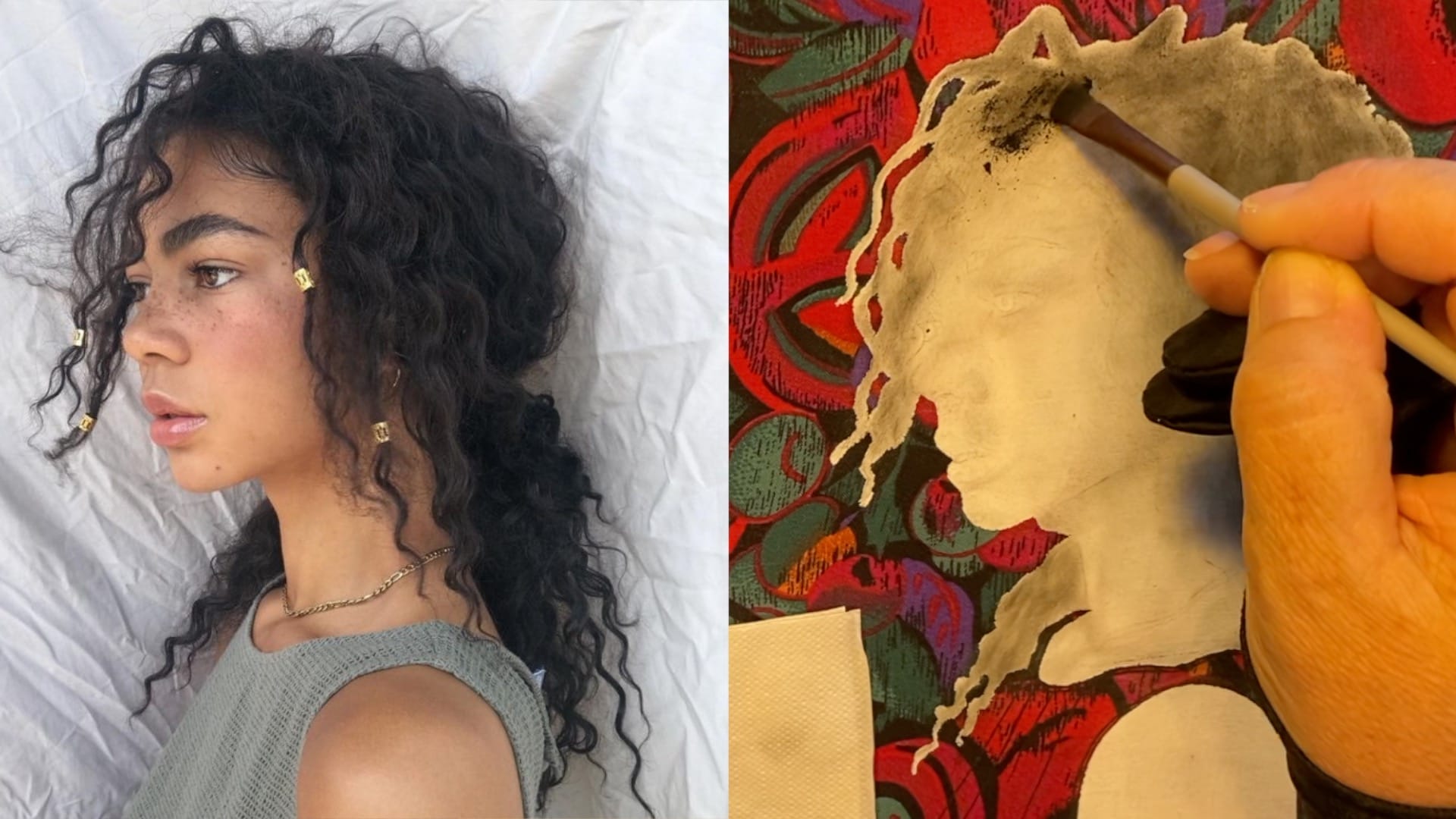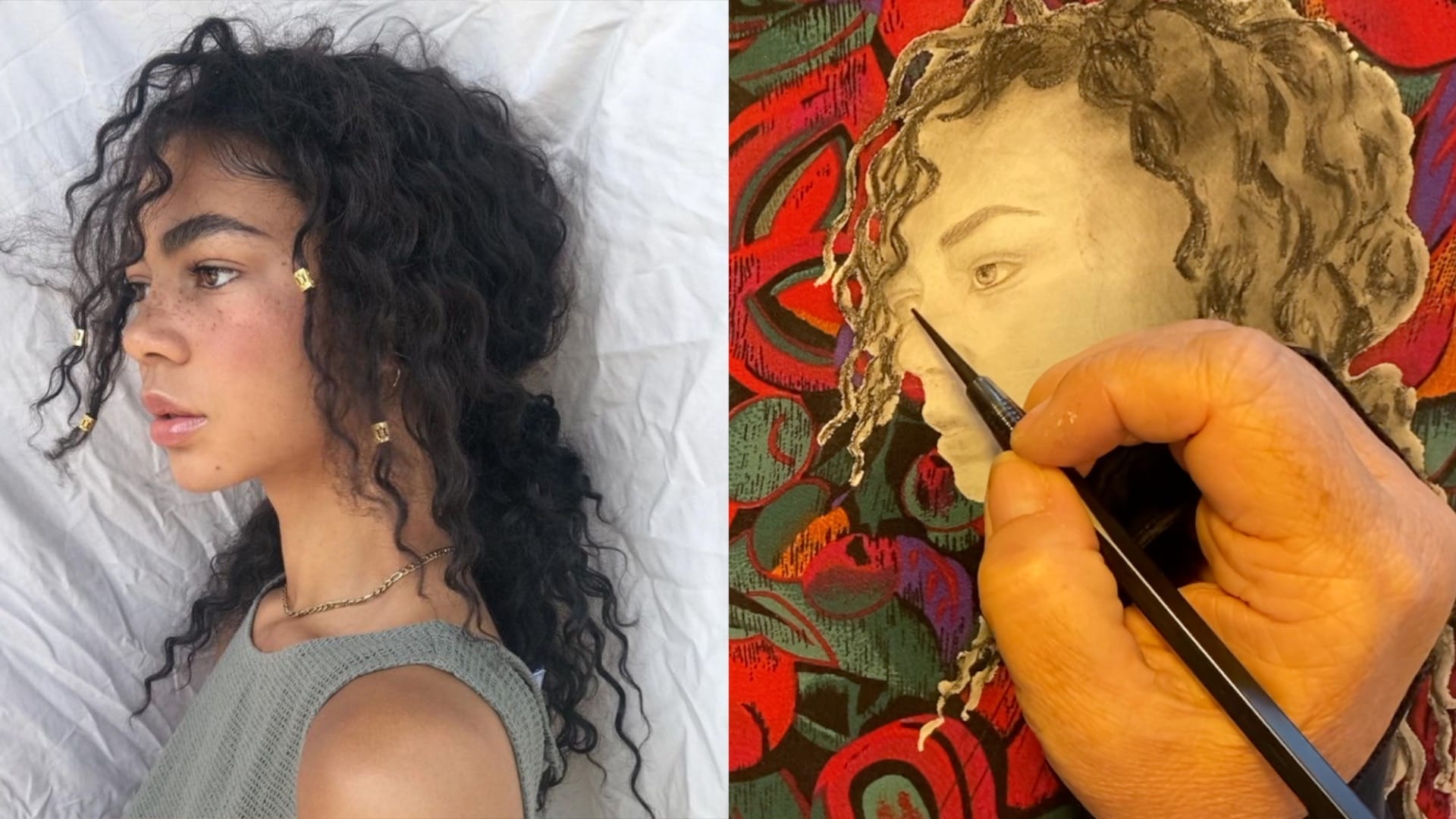 In her video tutorial, Sandra draws her muse Eden and shares the practical setup behind the scenes: choosing a reference that “grabs” her, planning composition (including the classic “leave space where the gaze travels”), and prepping a mixed surface so the portrait can sit cleanly against textured fabric without becoming muddy.