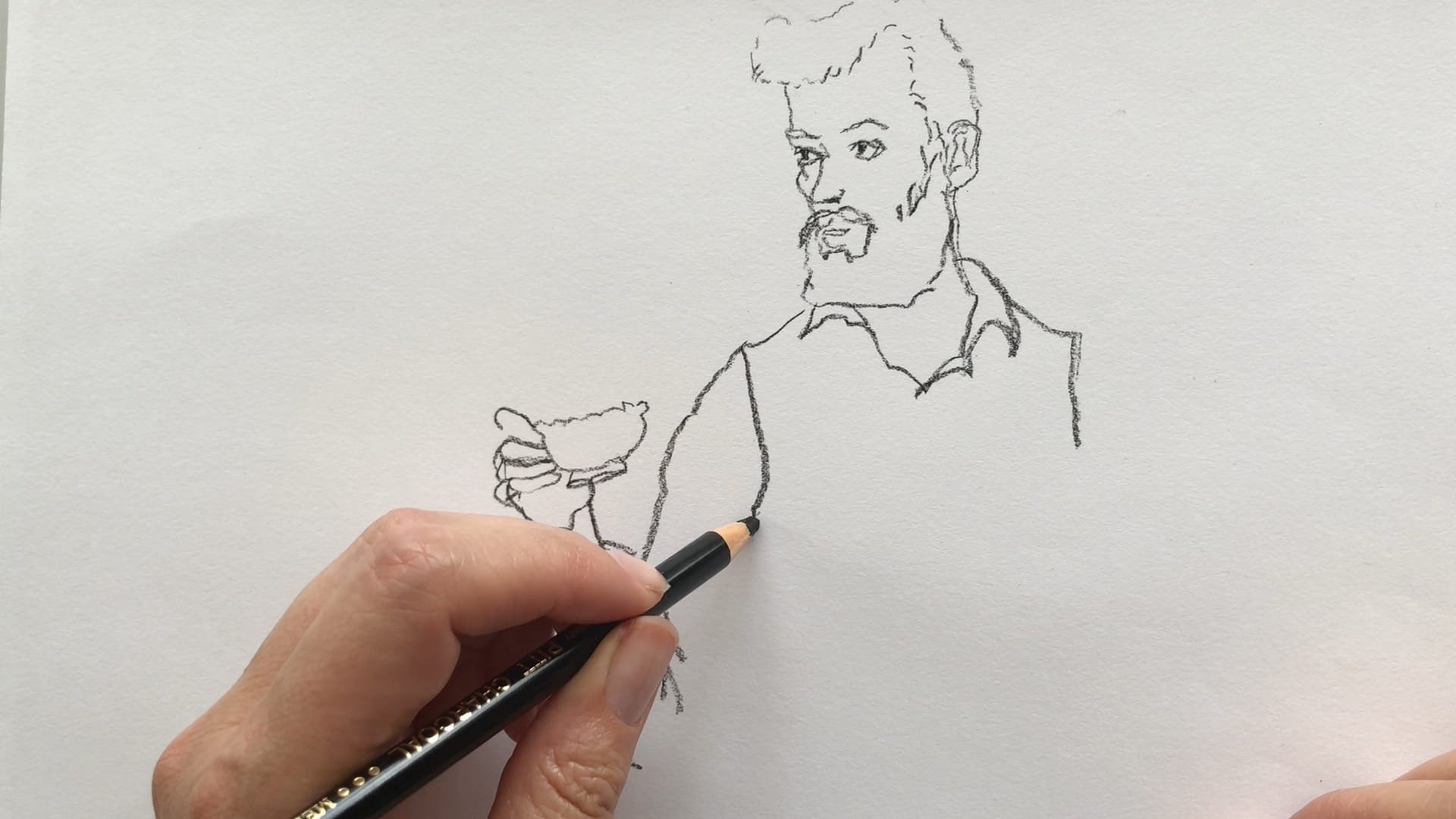 After the initial sketch, Chantal switches back to her dominant hand to refine and strengthen selected lines, demonstrating how both looseness and clarity can coexist in a single drawing. It’s a fast, freeing exercise with surprising rewards and a perfect reset if you’re feeling over-controlled in your usual work.