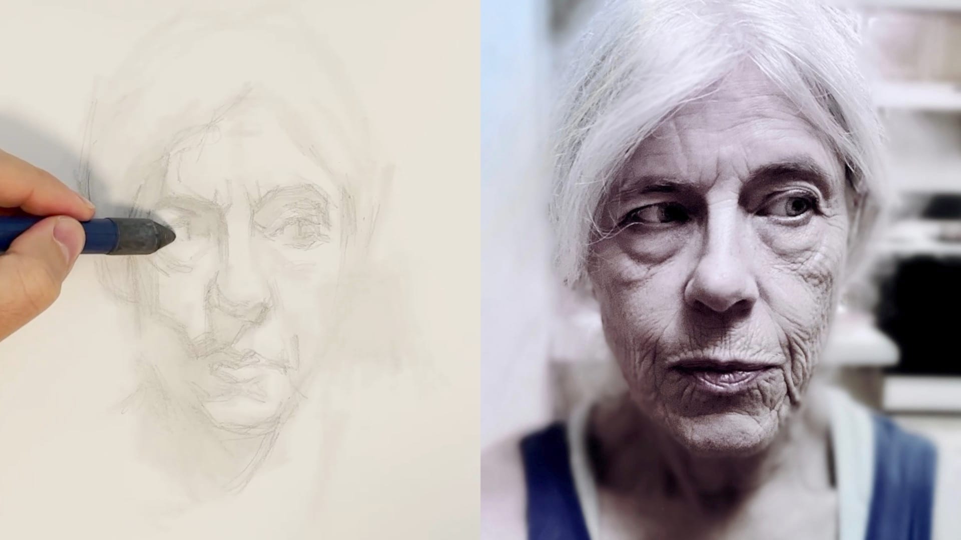 In this lesson (54 mins), Juan invites you to let go of rigid formulas and explore a looser, more intuitive process, using a blending stump to sculpt a face from soft, atmospheric tones.