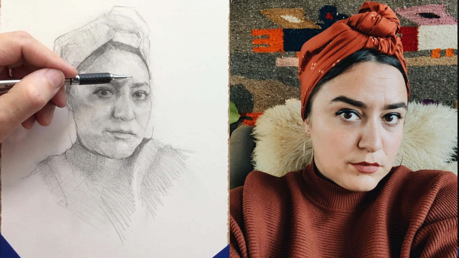 In this lesson (82 mins), Zac guides you through his patient, peaceful process of drawing a pencil portrait of a striking muse.